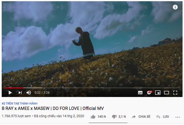 Sau gần 2 ngày lên sóng, hiện MV "Do For Love" đang giữ vị trí #2 trending Youtube.